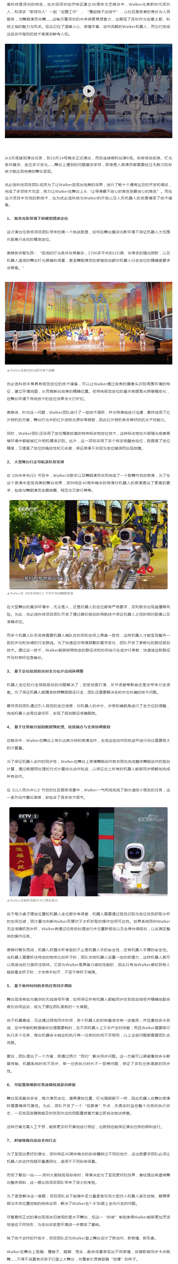 近日,“逐夢(mèng)·先行——慶祝深圳經(jīng)濟(jì)特區(qū)建立40周年文藝晚會(huì)”(以下簡稱深圳特區(qū)40周年晚會(huì))在深圳大劇院圓滿落下帷幕,在這場總時(shí)長100分鐘的晚會(huì)中,除了展現(xiàn)深圳一路先行先試、開拓前行的歷程外,還有誕生在新時(shí)代的“深圳人”Walker機(jī)器人的活力亮相。