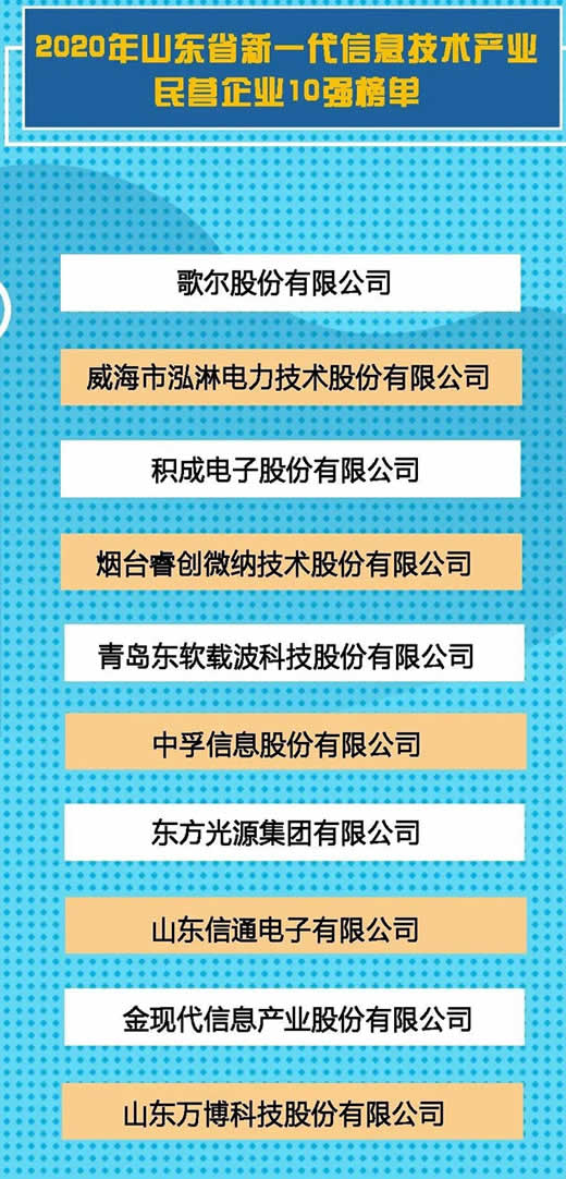 山東能源,海爾,兗礦,山東魏橋創業,濰柴控股,山東鋼鐵,海信,山東東明石化,南山,日照鋼鐵控股,萬達控股,利華益,晨鳴控股,山東G速,山東黃金,煙臺國豐投資控股,華泰,永鋒