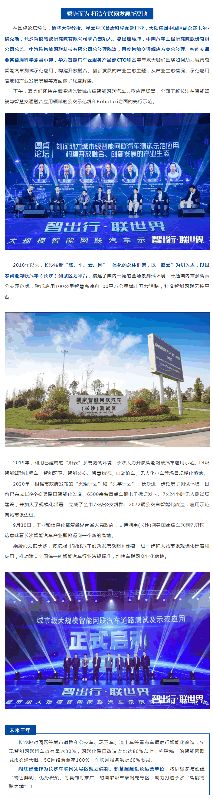 長沙市、株洲市、湘潭市、岳陽市工業(yè)和信息化局共同簽署了《城市級(jí)大規(guī)模智能網(wǎng)聯(lián)汽車道路測(cè)試及示范應(yīng)用共建倡議書》。