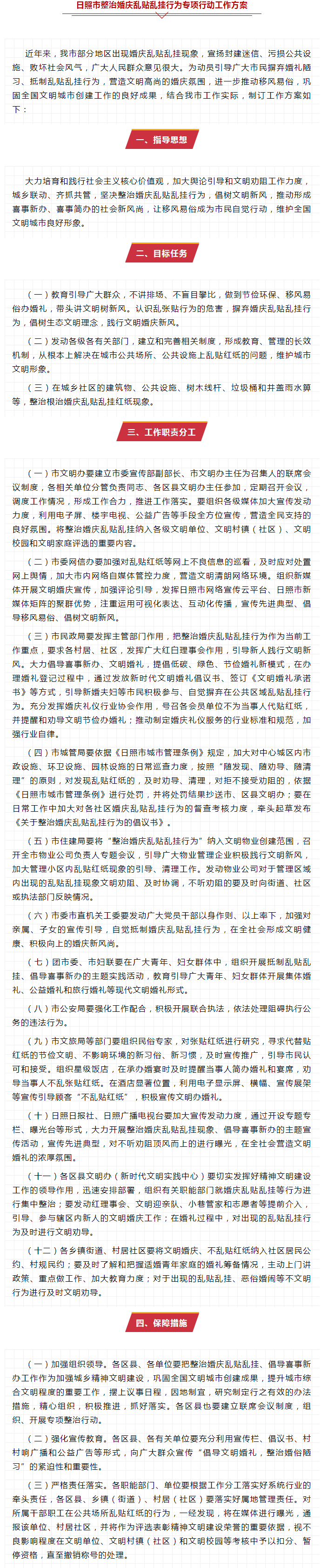 經市文明委研究同意,現將《日照市整治婚慶亂貼亂掛行為專項行動工作方案》印發給你們,請結合實際認真貫徹執行。