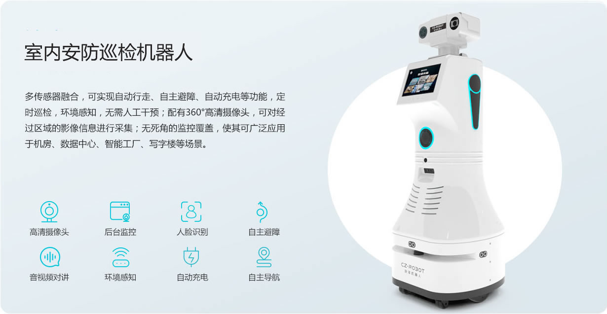 | 智能安防巡檢機器人是基于“人工智能+”設計開發的智能機器人平臺,集機器人視覺 系統、音視頻數據采集、消防和安防、無人駕駛技術于一體,搭載360°紅外攝像、超聲波雷達、雙目視覺攝像頭、網槍、催淚瓦斯噴射器、水炮、干粉滅火器等設備,基于輪式小車 實現全天候自動巡邏,360度聲音圖像同步回傳,自動躲避行人及障礙物。支持快速行走功 能,當發生異常時,可實現快速部署及現場支援,為用戶提供智能安全服務,是社區、學校 等公共場所人民群眾的保護神! |