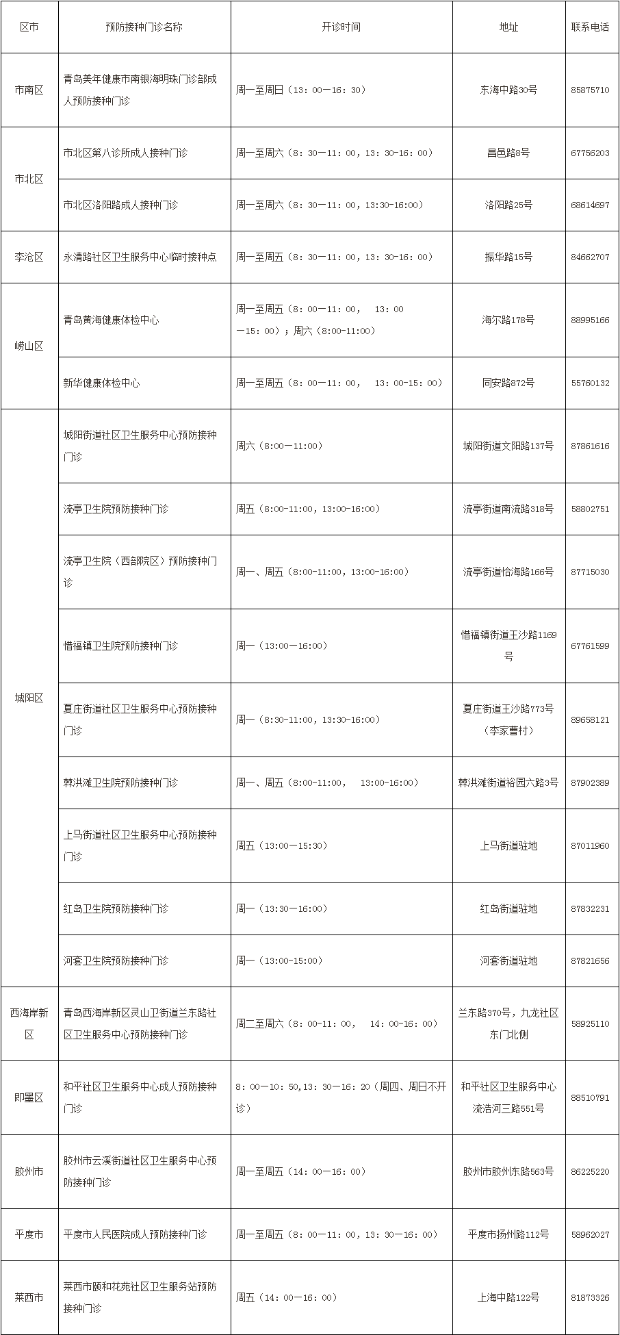 疫苗緊急接種單位:青島西海岸新區靈山衛街道蘭東路社區衛生服務中心預防接種門診(蘭東路370號,九龍社區東門北側),預約時間:周二至周六,8:00-11:00,14:00-16:00