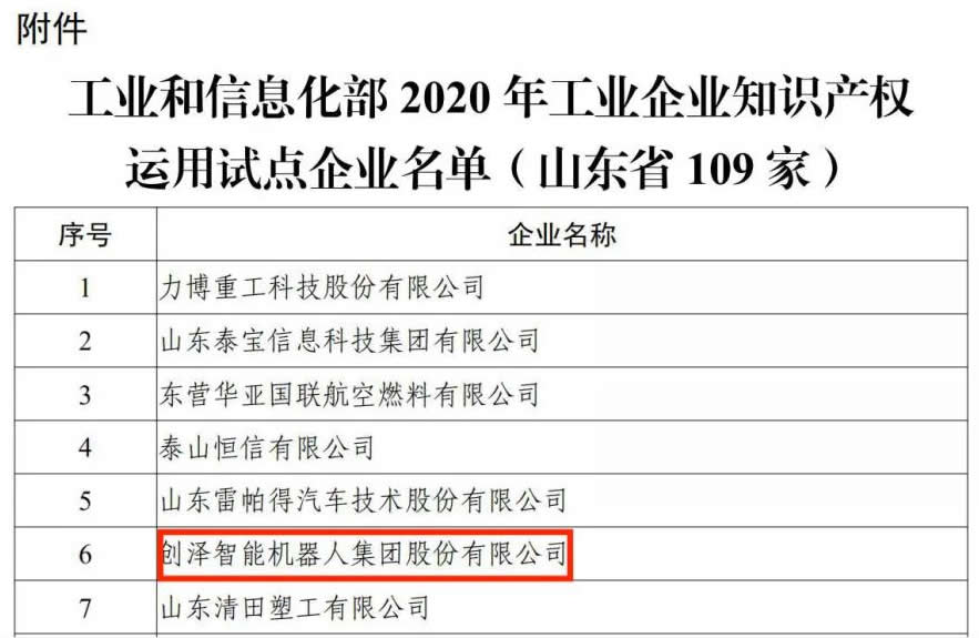 創(chuàng)澤集團(tuán)入選工信部2020年工業(yè)企業(yè)知識(shí)產(chǎn)權(quán)運(yùn)用試點(diǎn)企業(yè)名單 |