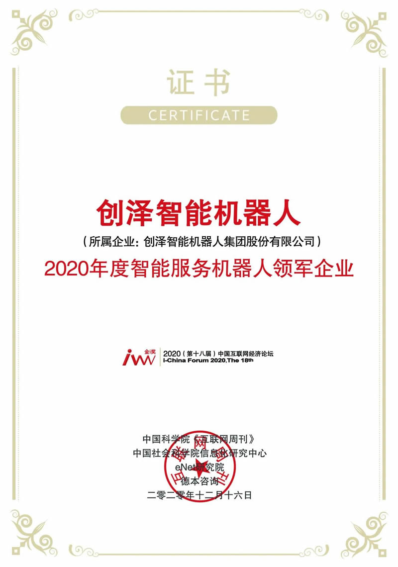 近日,第十八屆中國互聯網經濟論壇在北京舉辦。創澤智能機器人榮獲2020年度智能服務機器人L軍企業獎。