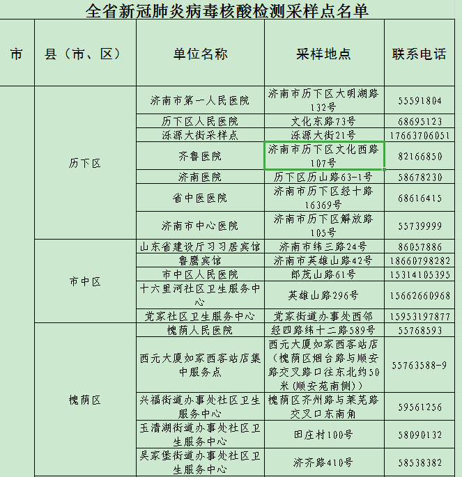 附件:山東核酸檢測采樣點(diǎn)全名單公布