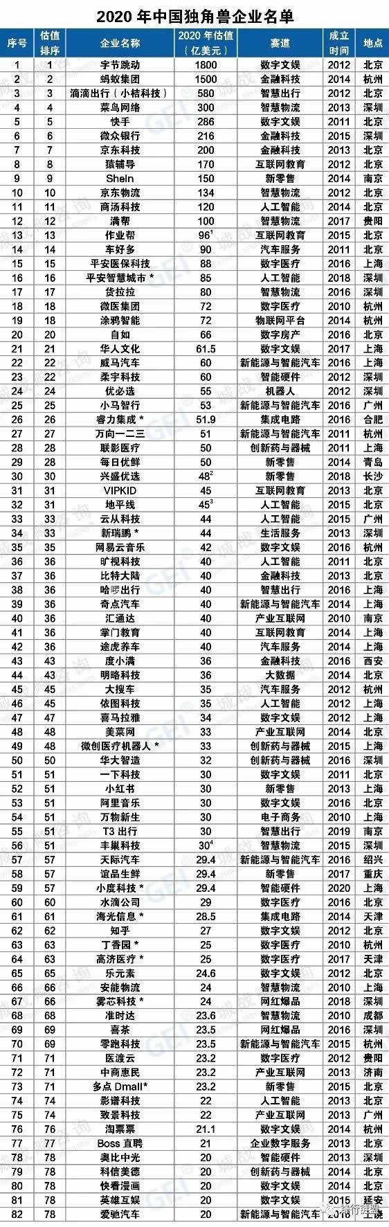 字節跳動 螞蟻集團 菜鳥網絡 京東科技 微眾銀行 shein 小紅書 大疆 元氣森林 商湯科技