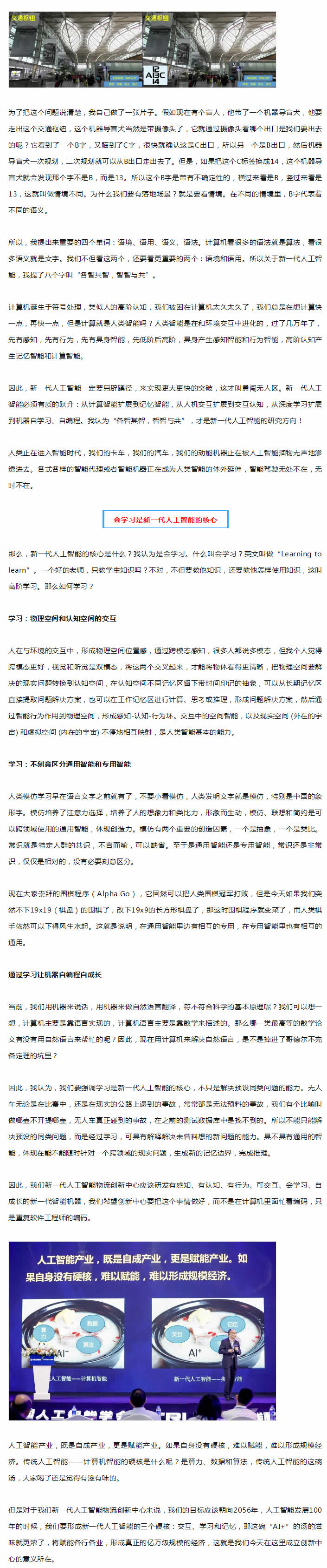 新一代人工智能一定要另辟蹊徑,來實(shí)現(xiàn)更大更快的突破,這才叫勇闖無人區(qū)。新一代人工智能需要有質(zhì)的躍升:從計(jì)算智能擴(kuò)展到記憶智能,從人機(jī)交互擴(kuò)展到交互認(rèn)知,從深度學(xué)習(xí)擴(kuò)展到機(jī)器自學(xué)習(xí)、自編程。我認(rèn)為“各智其智,智智與共”,才是新一代人工智能的研究方向!