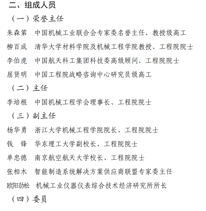 為落實《“十四五”智能制造發(fā)展規(guī)劃》,加強(qiáng)智能制造前瞻性和戰(zhàn)略性問題研究,提升研究水平和支撐能力,決定成立國家制造強(qiáng)國建設(shè)戰(zhàn)略咨詢委員會智能制造專家委員會,主要職責(zé)和人員名單詳見附件。