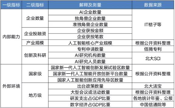 指數體系搭建方面,從系統性、權威性、可獲取性、可比性、發展性五大原則出發,按照MECE要求,來構建指標體系。從內部能力和外部環境兩大維度,由2個一級指標、6個二級指標、16個三級指標構成,并與多家權威數據機構合作,保障數據可信度和權威性。