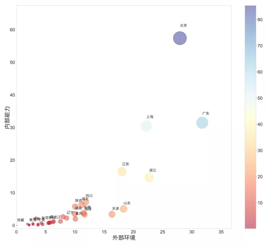 分省級維度,北京優勢明顯;廣東、上海、浙江、江蘇緊隨其后;重慶等9省市蓄勢待發。總體前三梯隊的14省市較之后省市有一定優勢。