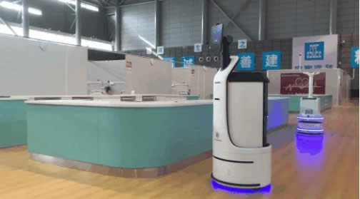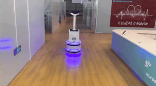 合肥方艙醫院由于收治點面積較大,配送機器人配有導診和引L功能,可方便住院患者前往護士站、處置室、淋浴間等地,放置病患迷路。