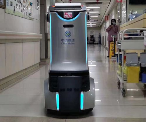達闥科技公司和中國移動聯合研發5G云端智能運輸機器人已在浙大二醫院應用,可替代醫護人員為患者提供藥品,機器人身上的分層儲物柜,可實現一次多單的配送。