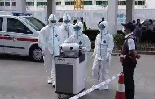東富龍消毒機器人在武漢金銀潭醫院、武漢協和醫院和武漢東西湖人民醫院等地參與抗疫保衛戰