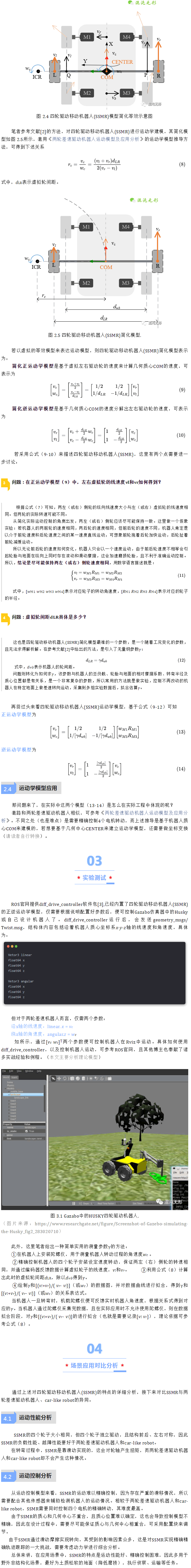 假如沒(méi)有旋轉(zhuǎn)運(yùn)動(dòng)(無(wú)滑移),意味著只有vl和vr,且vf和vb均為0,此時(shí)LR=QP;而如果存在旋轉(zhuǎn)運(yùn)動(dòng),也就是vf和vb不為0,存在滑移現(xiàn)象,則實(shí)際情況發(fā)生了變化,也就是說(shuō)按照vl和vr及PQ計(jì)算出來(lái)的角速度,并不是真實(shí)的角速度,而旋轉(zhuǎn)分運(yùn)動(dòng)不同,滑移(滑動(dòng)摩擦)程度不同,對(duì)實(shí)際的角速度影響也不同,因此虛擬輪間距LR是動(dòng)態(tài)變化的,與滑動(dòng)摩擦相關(guān),因此不同摩擦系數(shù)的地面與輪胎接觸,對(duì)實(shí)際旋轉(zhuǎn)運(yùn)動(dòng)也是有著不同影響的。