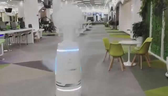 安裝了機器人底盤的消毒機器人通過將稀釋的消毒藥劑由霧化噴頭噴灑而出,對空氣進行霧化消毒,1小時可消毒1500m3的空間,同時也可以定時消毒功能,自動執(zhí)行消毒任務(wù)。給與環(huán)境較大程度的消殺,無需承受人力被感染的風險。無論白天還是黑夜都可以隨時工作,機器人消毒很細致,角角落落不留死角,工作效率很G。同時也可以實現(xiàn)自主移動、秒級智能避障、定時定點執(zhí)行消毒任務(wù)等功能。與人工消毒相比,機器人消毒具有零接觸、防止二次感染、消毒更多面徹底等優(yōu)勢,在提G作業(yè)效率的同時,能夠一定程度上減少人工投入。