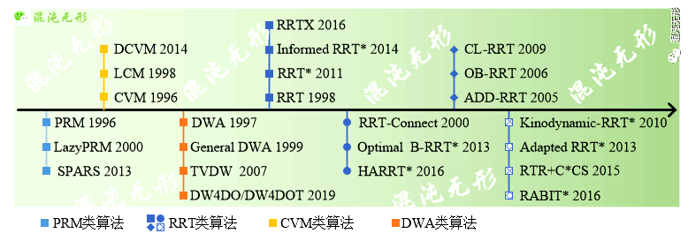 基于狀態(tài)空間采樣的算法能夠在大面積、G緯度的空間中快速生成路徑,包括RRT和PRM類算法等,具有概率完備性,其主要步驟包括隨機(jī)采樣、度量連接、碰撞檢測(cè)和路徑查詢。