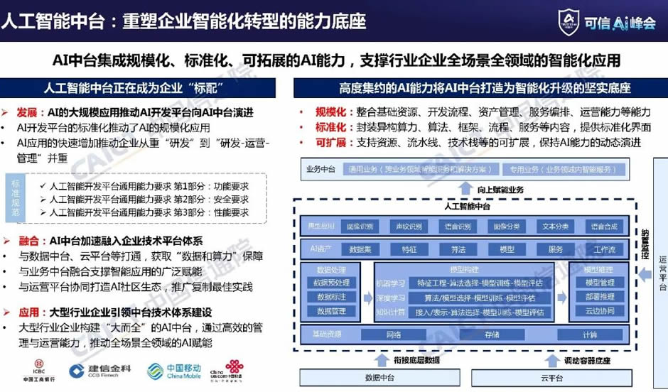 人工智能中臺(tái)重塑企業(yè)智能化轉(zhuǎn)型的能力底座。隨著企業(yè)從重視人工智能的“研發(fā)”,到“研發(fā)-運(yùn)營(yíng)”并重,AI開發(fā)平臺(tái)也逐漸向AI中臺(tái)演進(jìn)。