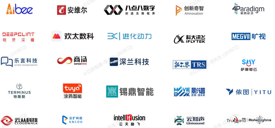 商湯科技,優必選,科大訊飛,深蘭科技,影譜科技,依圖科技,曠視,云從科技,創新奇智,影創科技,進化動力,百應,靈犀,數美科技,雙太數科,飛步科技