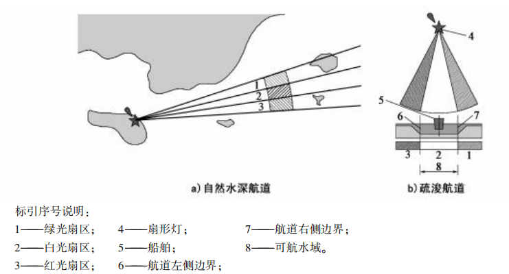 4. 4 當用扇形燈標示可航水域時,扇區邊界應與可航水域邊界保持一定的安全距離。