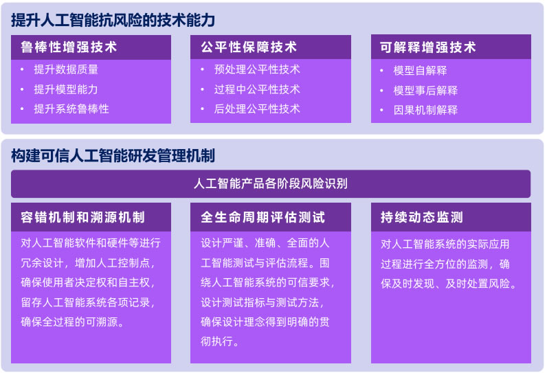 工智能仍是一項(xiàng)新技術(shù),回顧其發(fā)展歷程,真正大范圍地從實(shí)驗(yàn)室走向產(chǎn)業(yè)實(shí)踐、 廣泛應(yīng)用于我們的生產(chǎn)和生活之中,不過是十年的事情。持續(xù)探尋更健壯的技 術(shù)以及科學(xué)管控現(xiàn)有技術(shù)的"缺陷”,構(gòu)建面向可持續(xù)發(fā)展的人工智能技術(shù)體系, 致力于推動人工智能技術(shù)可用、可靠、可信,其內(nèi)涵包括提升技術(shù)安全和構(gòu)建技術(shù)管理機(jī)制兩個(gè)層面工作。