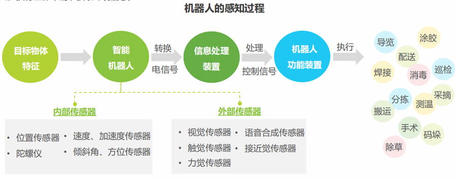 傳感器是機器人具有類人知覺與反應能力的基礎,它起到內部反饋控制,感知并與外部環境產生交互的作用。依據檢測
