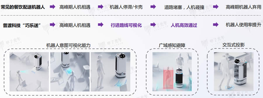 普渡科技創新性地將機器人的行走意圖可視化,建立人機通行的“紅綠燈機制”。