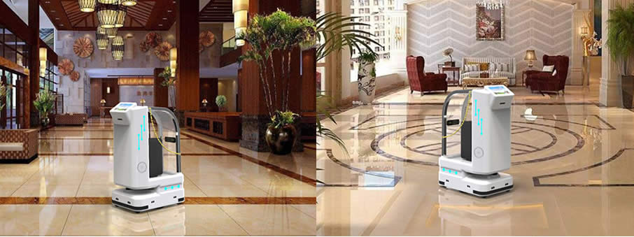 智能消殺機器人在疫情現(xiàn)場,重點針對患者、醫(yī)護、醫(yī)廢的G頻活動區(qū)域進行沿路經(jīng)自動G水平消毒
