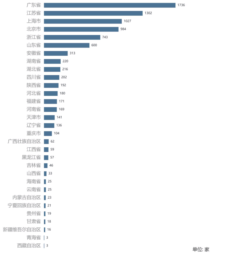 截止到2023年02月28日,廣東省、江蘇省和上海市機(jī)器人產(chǎn)業(yè)企業(yè)數(shù)量位列全國(guó)前三,分別有1, 7 3 6、1, 3 0 2和 1,027家。