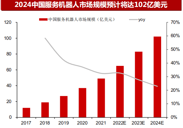 特種機器人市場規模快速增長,2024年我國特種機器人市場規模可達34億美元,復合增速預計可達27%,特種機器人市場規模增長至2024年的140億美元