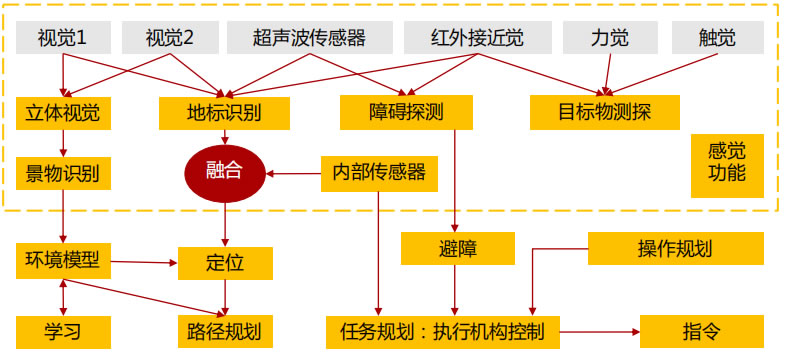 視覺感知控制基于2D,3D攝像頭信息采集實現(xiàn)目標(biāo)感知;多模態(tài)融合控制進(jìn)行感知模態(tài)信息融合進(jìn)行運動預(yù)測與意圖識別