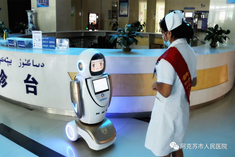 “您好!請問有什么能夠幫助您的嗎?”近日,在阿克蘇市人民醫院門診綜合樓大廳內,一個長相憨態可掬的智慧醫療機器人--“創創”,一經出現,就瞬間吸引了前來我院就醫患者的眼球。可千萬別小看這個萌萌噠的小家伙,它的作用可大著呢!