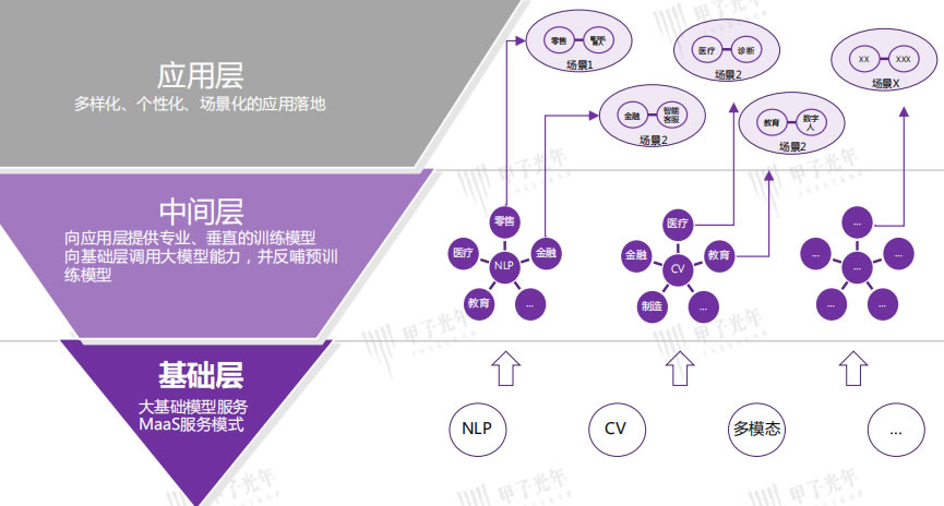 三層,變化為芯片層、框架層、模型層和應用層四層,其中模型層中會出現中間層、應用