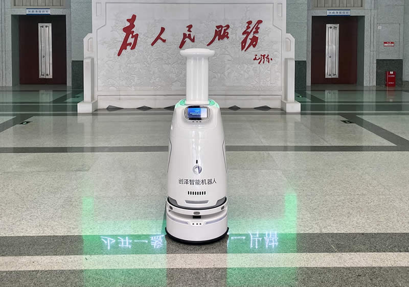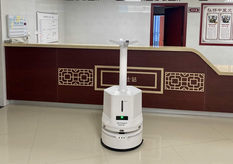 通過霧化消毒液的形式自動對空氣進行消毒的機器人。可按設定路線,自主導航行走,6組霧化噴頭出霧量大,殺毒效果快,全自動對室內空間物表和空氣進行 360° 無死角消毒,避免人員感染風險。可廣泛用于醫院、 銀行、學校、餐廳、酒店、工廠、寫字樓、政務機關、地鐵、 機場等場景。