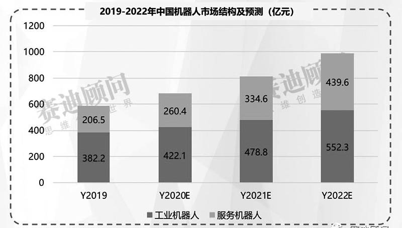 未來三年,區域市場結構的總體格局基本保持不變。到2022年,華東、中南、華北仍然占據大比重,這些區域企業的技術水平和服務能力將會進一步提升,G價值工業機器人和服務機器人市場也主要集中在這些區域。